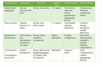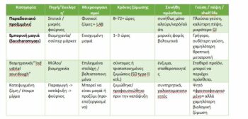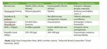 Πίνακας συγκριτικός παραδοσιακού και βιομηχανικού ψωμιού
