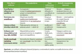Πίνακας για τις πιθανές επιδράσεις στην υγεία