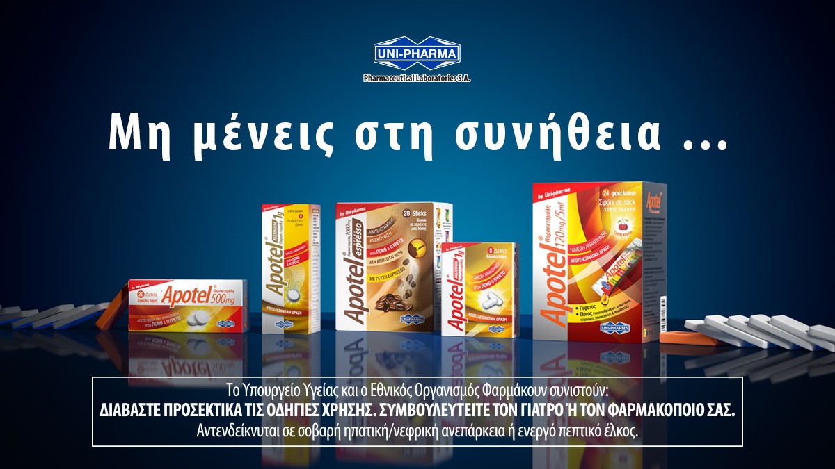 Μέσα από τη νέα αυτή καμπάνια, το Apotel® γίνεται, έτσι, σύμβολο αυτής της αλλαγής: Μιας στάσης ζωής που μάς υπενθυμίζει ότι η πραγματική δύναμη δεν βρίσκεται στο να μένουμε «κολλημένοι» στη συνήθεια, αλλά στο να επιλέγουμε με γνώμονα τις προσωπικές μας ανάγκες.