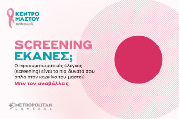 Το θεραπευτήριο Metropolitan General με αφορμή τον Οκτώβριο, μήνα Πρόληψης και Ενημέρωσης για τον Καρκίνο του Μαστού, παρέχει: