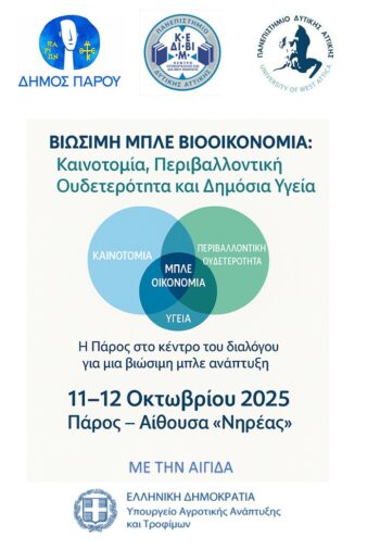 Στην Πάρο στρέφεται το επιστημονικό ενδιαφέρον το ερχόμενο Σαββατοκύριακο – και συγκεκριμένα στις 11 και 12 Οκτωβρίου 2025 –  οπότε και θα πραγματοπιηθεί το πρώτο συνέδριο για τη βιώσιμη μπλε βιοοικονομία.