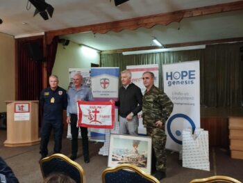 Ο ιδρυτής και πρόεδρος της HOPEgenesis Δρ Στέφανος Χανδακάς με τον πλοίαρχο Νικόλαο Πετρογιάννη, εμπνευστές της γόνιμης σύμπραξης της οργάνωσης με το ΝΝΑ