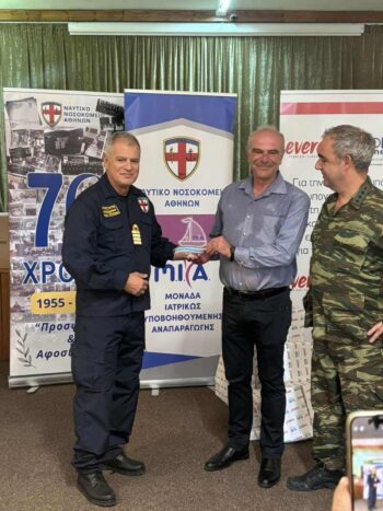 «Το Ναυτικό Νοσοκομείο έχει συμπληρώσει 70 χρόνια λειτουργίας και πλέον διαθέτει αξονικό τομογράφο κάτι το οποίο αναβαθμίζει τις παρεχόμενες υπηρεσίες. Tαυτόχρονα να θυμίσω ότι όλα τα ακριτικά νησιά είναι υιοθετημένα από τα στρατιωτικά νοσοκομεία. Οι Οινούσσες λόγου χάρη είναι υιοθετημένες από την Πολεμική Αεροπορία. Παραταύτα επειδή φοβάμαι ότι δεν το ξέρετε, να γνωρίζετε ότι οι κάτοικοι των Οινουσσών μέσω του δημάρχου με ένα τηλεφώνημα ή ένα mail έχουν δικαίωμα να νοσηλεύονται και στο Ναυτικό νοσοκομείο» είπε ο κ. Σωτήριος Μωραϊτης, Υποναύαρχος (ΥΙ), Διευθυντής της Διεύθυνσης Υγειονομικού του Γενικού Επιτελείου Ναυτικού.