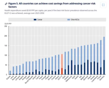 Μία από τις μεγαλύτερες υγειονομικές και οικονομικές προκλήσεις για την Ευρώπη παραμένει ο καρκίνος. Σύμφωνα με πρόσφατη έκθεση του ΟΟΣΑ, σε χώρες της ΕΕ και του Ευρωπαϊκού Οικονομικού Χώρου, 4 άνθρωποι λαμβάνουν διάγνωση καρκίνου κάθε λεπτό. Ο αντίκτυπος στα συστήματα υγείας υπολογίζεται σε σχεδόν 97 δισ. ευρώ ετησίως, ενώ οι απώλειες στην παραγωγικότητα ξεπερνούν τα 50 δισ. ευρώ, ποσό αντίστοιχο με το ΑΕΠ της Λετονίας.