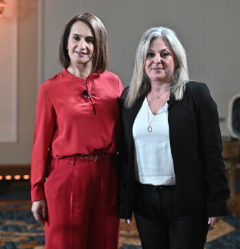 H κυρία Δάφνη Καϊτελίδου, Καθηγήτρια Διοίκησης Υπηρεσιών Υγείας, Τμήμα Νοσηλευτικής, ΕΚΠΑ – Πρόεδρος ΟΔΙΠΥ και η κυρία Παναγιώτα Καρλατήρα, Διευθύντρια σύνταξης του ygeiamou.gr