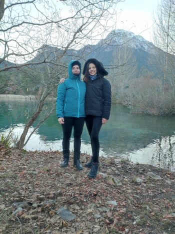 Η κυρία Διονυσία Ρηγάτου (δεξιά) και η κυρία Ελένη Κυτίνου (αριστερά) στη λίμνη Δόξα