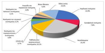 Η Ελληνική Στατιστική Αρχή (ΕΛΣΤΑΤ) δημοσιοποίησε τα στατιστικά στοιχεία για τις αιτίες θανάτου του 2023, όπως προκύπτουν από τα σχετικά πιστοποιητικά που συμπληρώνουν οι ιατροί και, στις περιπτώσεις βίαιων ή αιφνίδιων θανάτων, από τις Ιατροδικαστικές Υπηρεσίες. Η ταξινόμηση των αιτιών γίνεται με βάση την 10η Αναθεώρηση της Διεθνούς Ταξινόμησης Νόσων (ICD-10, έκδοση 2008), η οποία υιοθετήθηκε το 2014.