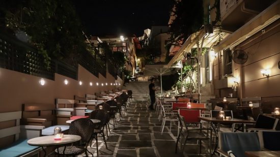 Η λειτουργία των καταστημάτων υγειονομικού ενδιαφέροντος που βρίσκονται εντός των ορίων α) των Περιφερειών Κρήτης και Ανατολικής Μακεδονίας και Θράκης, β) των Περιφερειακών Ενοτήτων Θεσσαλονίκης, Λάρισας, Κέρκυρας και Καρδίτσας και γ) των Δήμων Θήρας, Βόλου, Κατερίνης, Ρόδου, Κω, Πάρου και Αντιπάρου απαγορεύεται από τις 12:00 έως τις 5:00 της επόμενης ημέρας. Η απαγόρευση καταλαμβάνει τις δραστηριότητες υπηρεσιών εστιατορίων και κινητών μονάδων εστίασης/ΚΑΔ 56.10, παροχής ποτών/ΚΑΔ 56.30 και τροφοδοσίας για εκδηλώσεις (catering)/ΚΑΔ 56.21 συμπεριλαμβανομένων και των οκταψήφιων αριθμών αυτών, καθώς και εκμετάλλευσης κτήματος για τη διενέργεια εκδηλώσεων (γάμων και συναφών) /ΚΑΔ 93.29.11.03 και διοργάνωσης ψυχαγωγικών εκδηλώσεων (γάμων και συναφών) /ΚΑΔ 93.29.19.01. Επιτρέπεται, όμως, η διανομή προϊόντων (delivery), οι υπηρεσίες παροχής προϊόντων σε πακέτο από το κατάστημα (take away) τηρουμένης της απόστασης 1,5 μέτρου μεταξύ των πελατών, καθώς και drive-through και εξαιρουμένης πάντως της παροχής αλκοολούχων ποτών από το σύνολο των καταστημάτων που ασκούν τις δραστηριότητες που καταλαμβάνονται από τους ΚΑΔ της παρούσας.