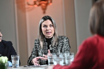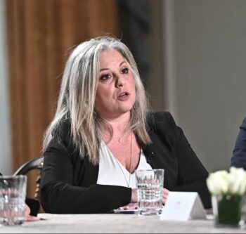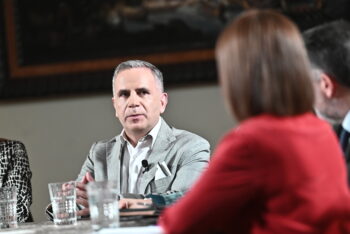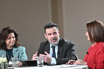 Η κυρία Κορίνα Πατέλη-Βell (δεξιά) και ο κ. Γιώργος Καπετανάκης στο Στρογγυλό Τραπέζι του ygeiamou.gr για τον καρκίνο του πνεύμονα